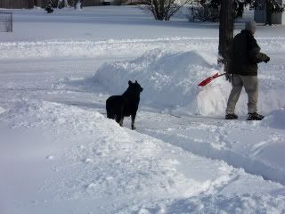 Just the other day you could actually see the grass and now this! Blech! At least one member of this family loves it....Cloz'r :) She goes out and tunnels around with her nose. It's cute but then she comes in all wet and covered in snow.